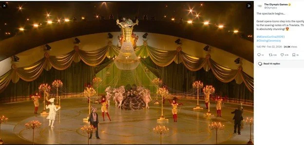 One of the toughest things about writing on the New York Hippodrome is trying to explain what the shows were like when there are not many present-day analogues. I usually end up saying some kind of hedging variation, asking people to mentally combine Cirque du Soleil and the Rockettes’ Christmas Special with a Super Bowl halftime show. But when the Olympics are on, I don’t have to struggle. The weird, extravagant, cheesy, over-the-top pageantry in the opening and closing ceremonies? That’s what Hippodrome shows were like. A case in point: last night, when I was riding my exercise bike and watching the Winter 2026 Milano Cortina closing ceremonies, noting the creepy court jester in the pre-taped backstage parts who was going from one dressing room to another and calling on characters from a bunch of different operas, I said to my husband who was on the treadmill, “That’s just like the Hippodrome number called ‘I Dreamed that I Went to the Great Opera Ball!’”