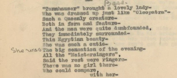 I love the play between highbrow and lowbrow that you get in the lyrics, especially calling Cleopatra a “cutie” and rhyming “meistersingers” with “ringers.” It’s such a fun period, one when opera is still enough a part of American popular culture that they can riff like that. Highbrow/ Lowbrow: The Emergence of Cultural Hierarchy in America by Lawrence Levine is still so good, and I’m thinking about it again because I’m teaching my Modernism High and Low grad class again in the fall.